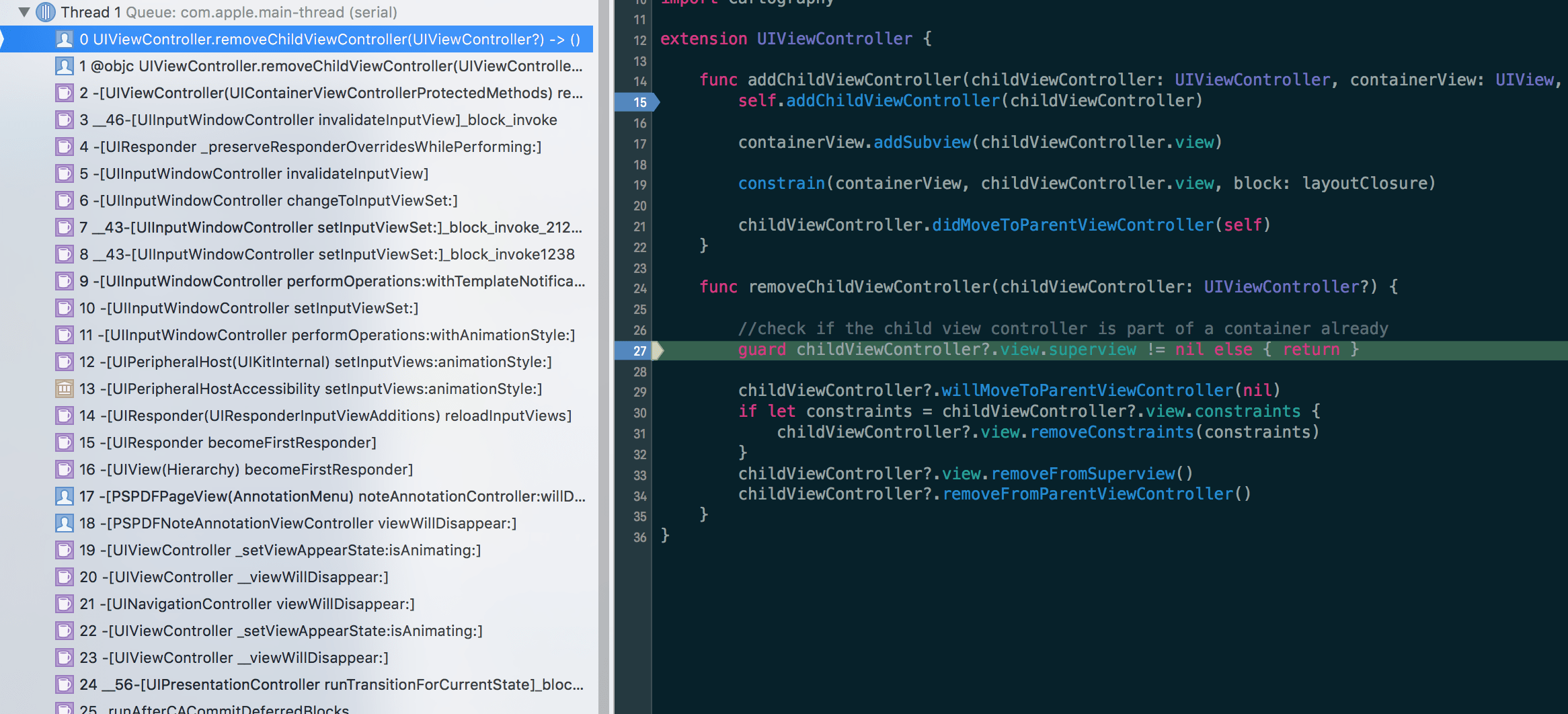 PSPDFKit is a commerical framework that allows you to embed a PDF viewer/editor into your app. Today, we received a report for a very weird crash with a stack trace that contained only UIKit symbols, but was clearly triggered by a specific action in PSPDFKit (Toggling the note annotation view controller quickly).