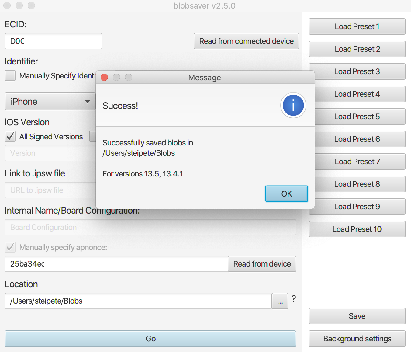 As of the time of writing this post, Apple signs iOS 13.4.1 and iOS 13.5, and you can expect 13.4.1 will be removed in a few days. With saving this blob, you can downgrade at any time without being dependent on Apple.