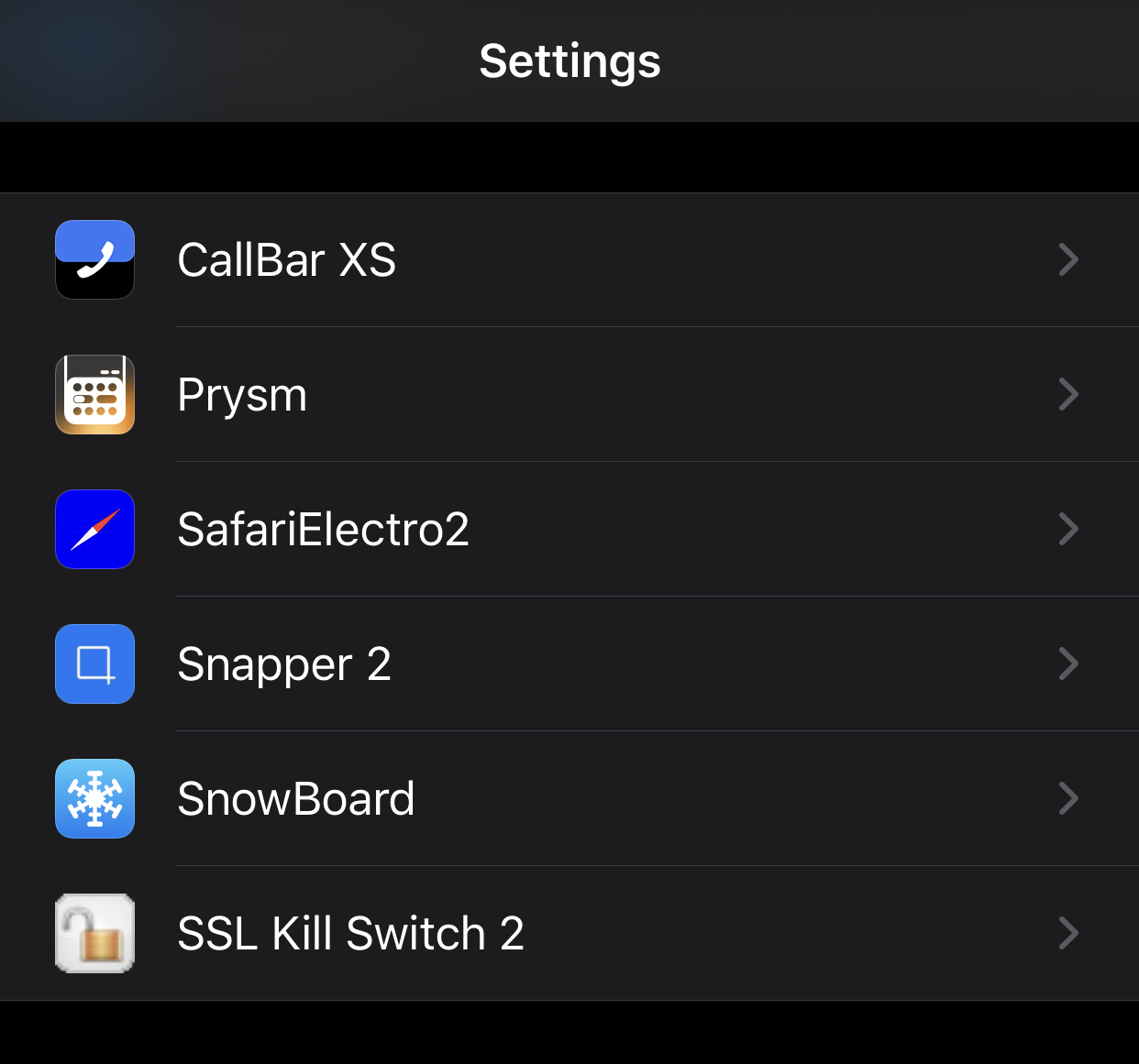 Many tweaks either modify apps themselves or integrate into Settings: